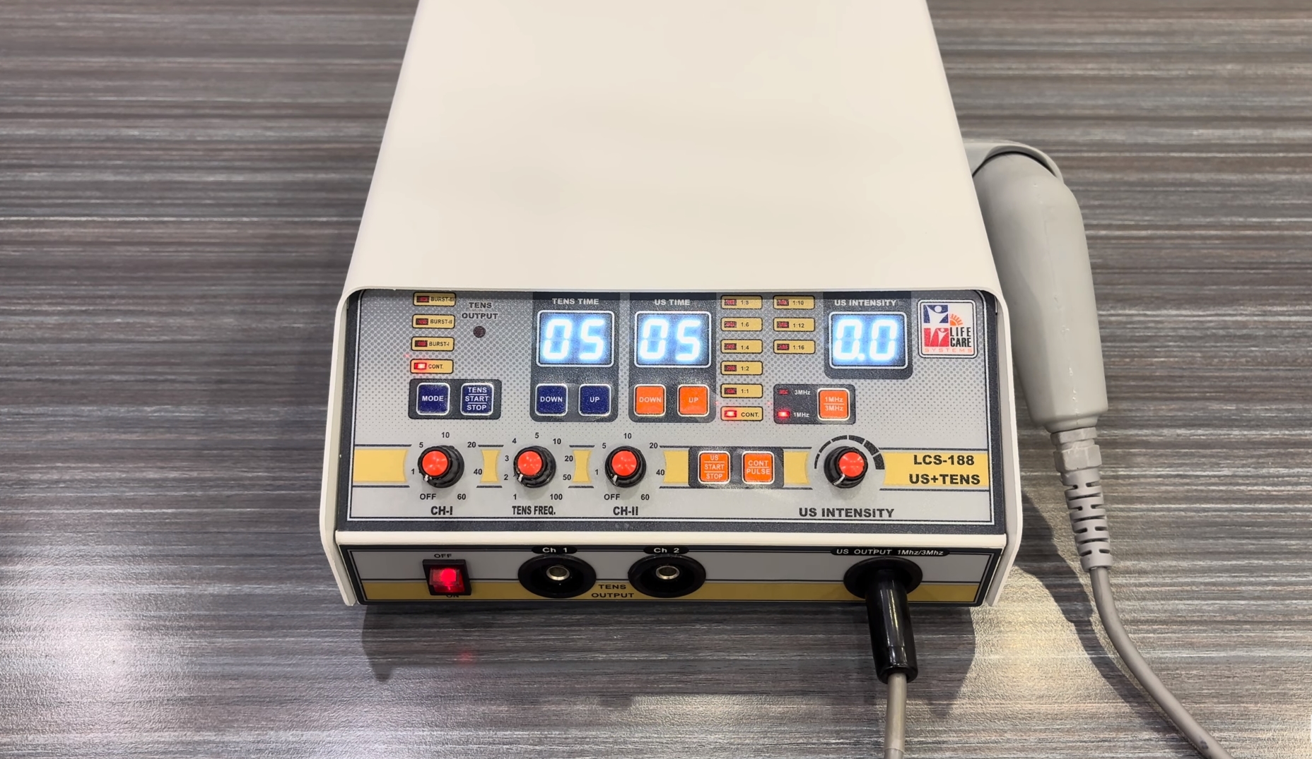 Máy điện xung kết hợp siêu âm trị liệu LCS 188 – Với siêu âm trị liệu đa tần 1 Mhz và 3 Mhz và dòng điện xung Tens đa dạng 2 kênh