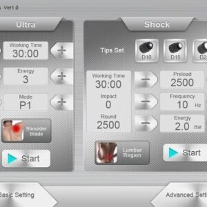 - Điều khiển độc lập: Cả hai chức năng sóng xung kích và siêu âm đều có thể được thiết lập thông số độc lập, giúp các chuyên gia dễ dàng điều chỉnh và sử dụng riêng lẻ hoặc kết hợp tùy theo nhu cầu.